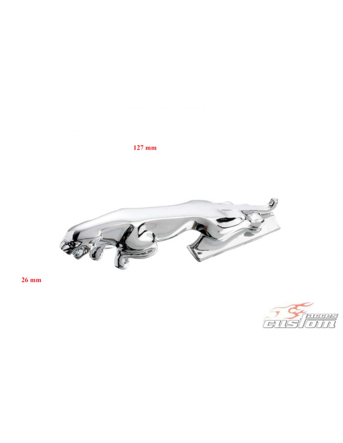 ORNAMENTO GIAGUARO CROMATO SU PARAFANGHI ANTERIORI. Materiale: acciao cromato. Dimensioni (Lxl): 127x26 mm. Fissaggio attraverso viti.