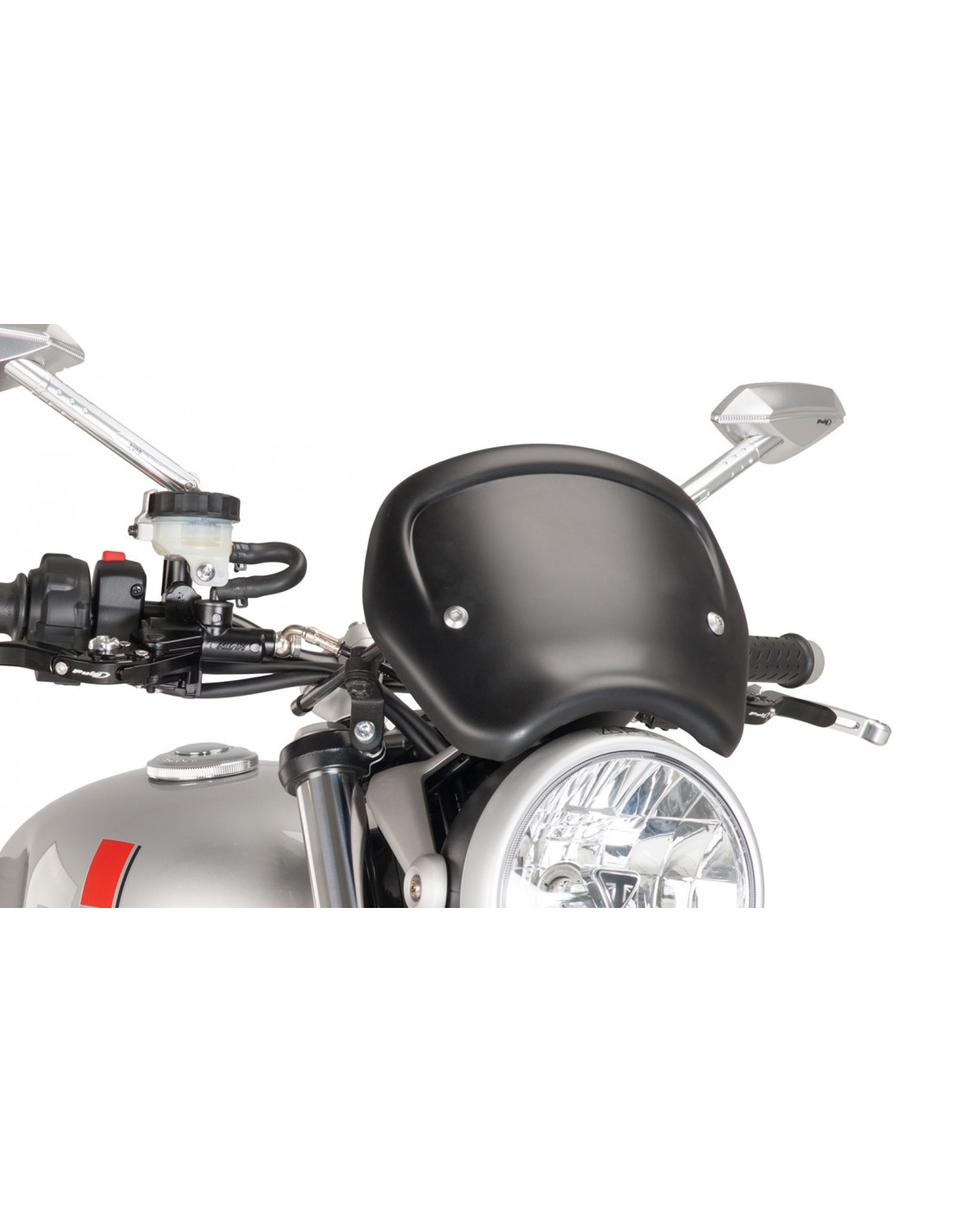 PUIG CARENATURA FRONTALE UNIVERSALE COLORE NERO OPACO. Dimensioni (HxL): 210x250 mm. Realizzato in plastica ABS. Kit di montaggio incluso. Punti di fissaggio: 2. Kit adesivi incluso. Omologato T.U.V.