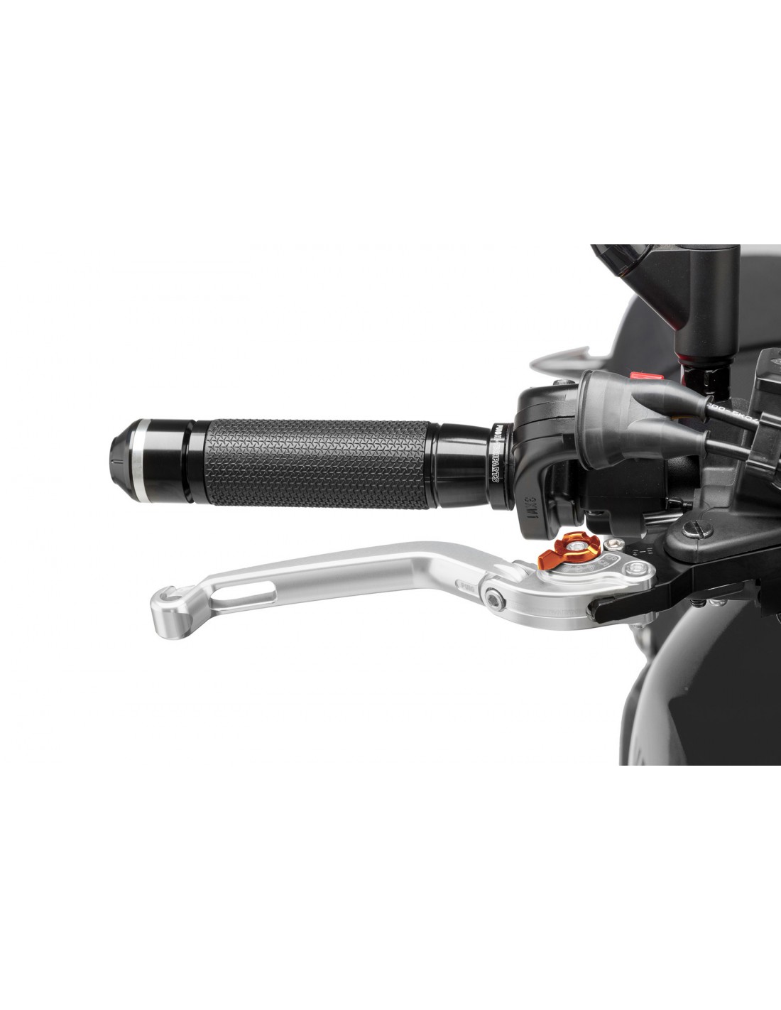 PUIG LEVA FRENO PIEGHEVOLE ARGENTO E SELETTORE ARANCIONE - Lunghezza: 160 mm - (Attenzione la leva non include l'adattatore) - 1