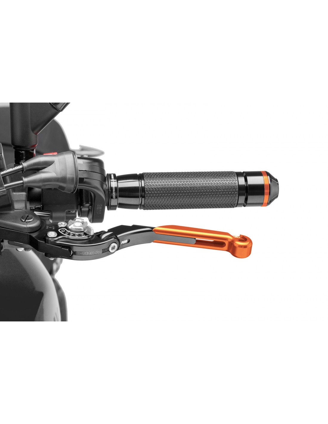 PUIG LEVA FRIZIONE ESTENSIBILE E PIEGHEVOLE CON CORPO CENTRALE DI COLORE NERO ESTENSIONE COLORE ARANCIONE E SELETTORE ARGENTO. Materiale: ergal 7075 ricavato dal pieno. Peso: 100 gr. Lunghezza: 133-153 mm. Numero di regolazioni: 6. Omologato T.U.V. (Attenzione la leva non include l'adattatore)