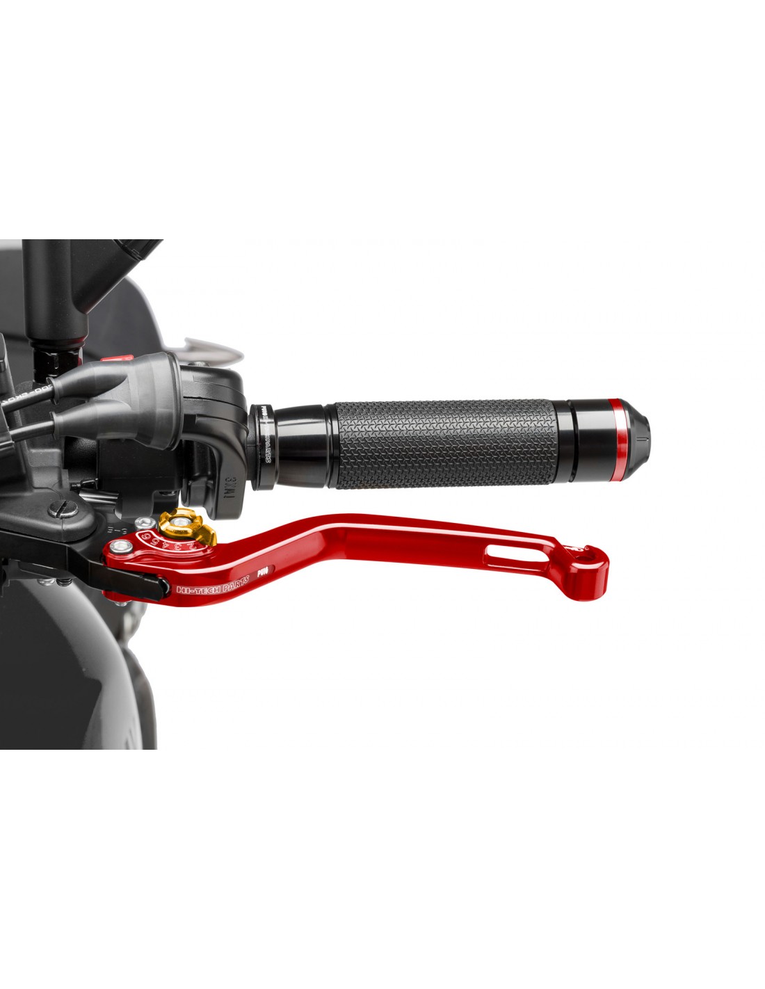 PUIG LEVA FRIZIONE FISSA COLORE ROSSO E SELETTORE ORO. Materiale: ergal 7075 ricavato dal pieno. Peso: 100 gr. Lunghezza: 160 mm. Numero di regolazioni: 6. Omologato T.U.V. (Attenzione la leva non include l'adattatore)