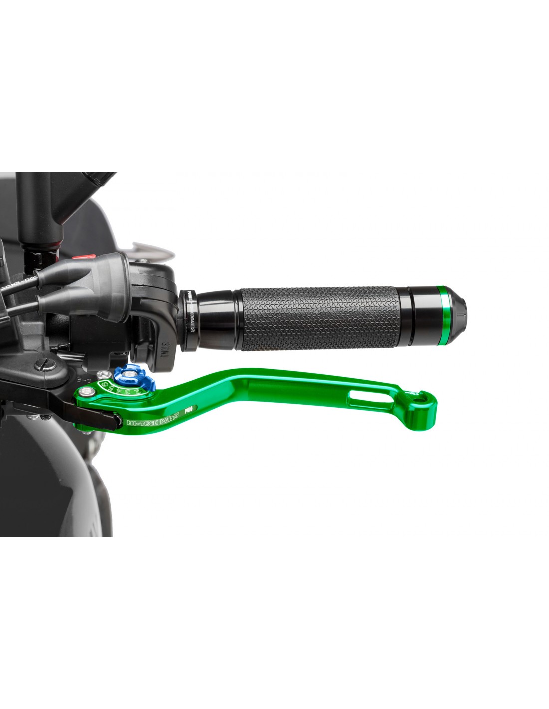 PUIG LEVA FRIZIONE FISSA COLORE VERDE E SELETTORE BLU. Materiale: ergal 7075 ricavato dal pieno. Peso: 100 gr. Lunghezza: 160 mm. Numero di regolazioni: 6. Omologato T.U.V. (Attenzione la leva non include l'adattatore)