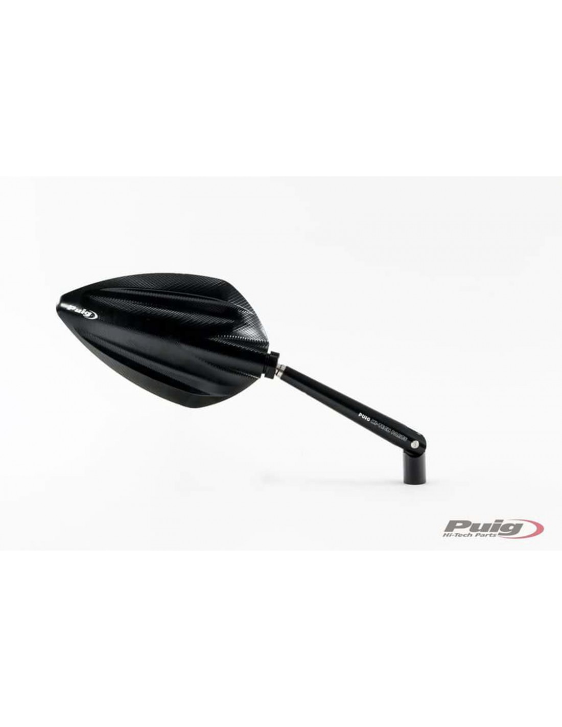 PUIG SPECCHIETTO RETROVISORE DESTRO MODELLO HI-TECH III COLORE NERO. Dimensioni coppa (HxL): 90x150 mm. Regolabile nell'inclinazione e altezza. Materiale: alluminio anodizzato. Filettatura M10 universale, nel kit adattatore e' incluso la filettatura sinistra M10 x 1.25. Omologato.