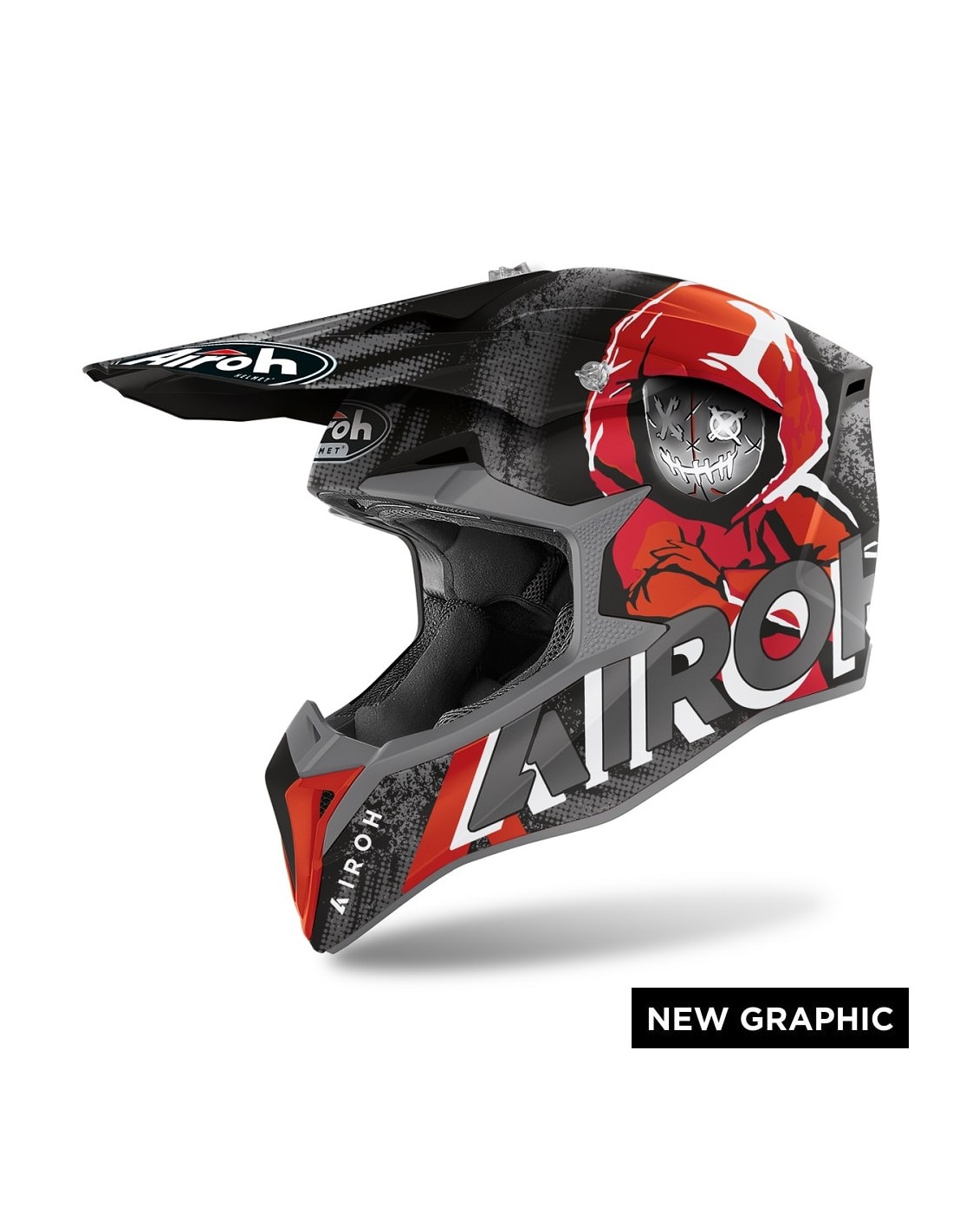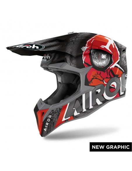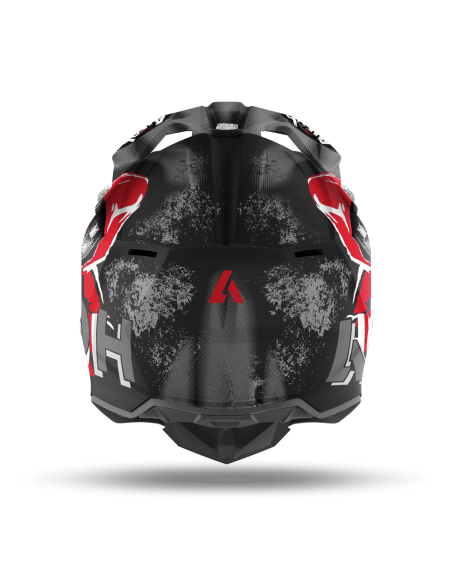Questo è un casco prodotto da AIROH nel 2021. Il casco è rosso, grigio e nero opaco.