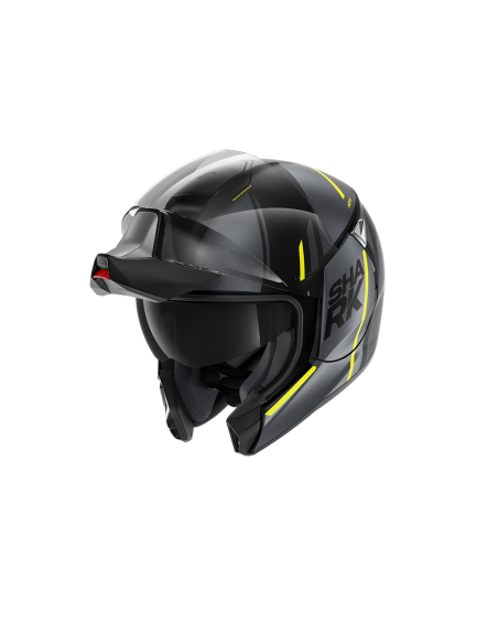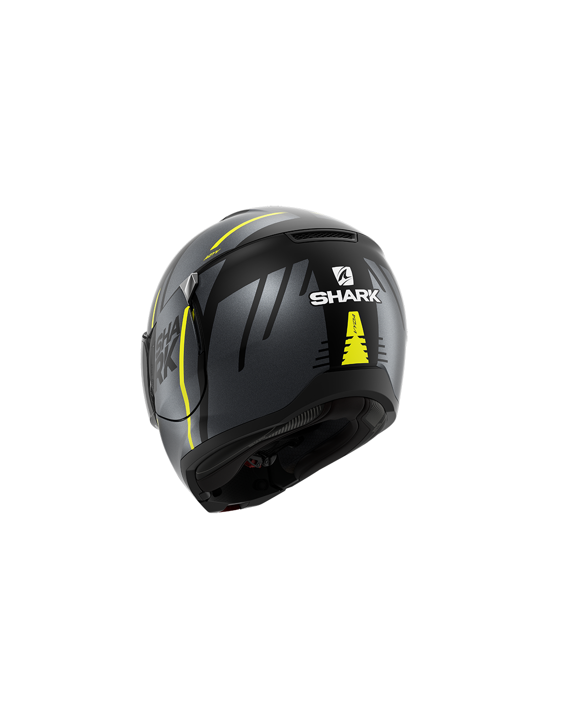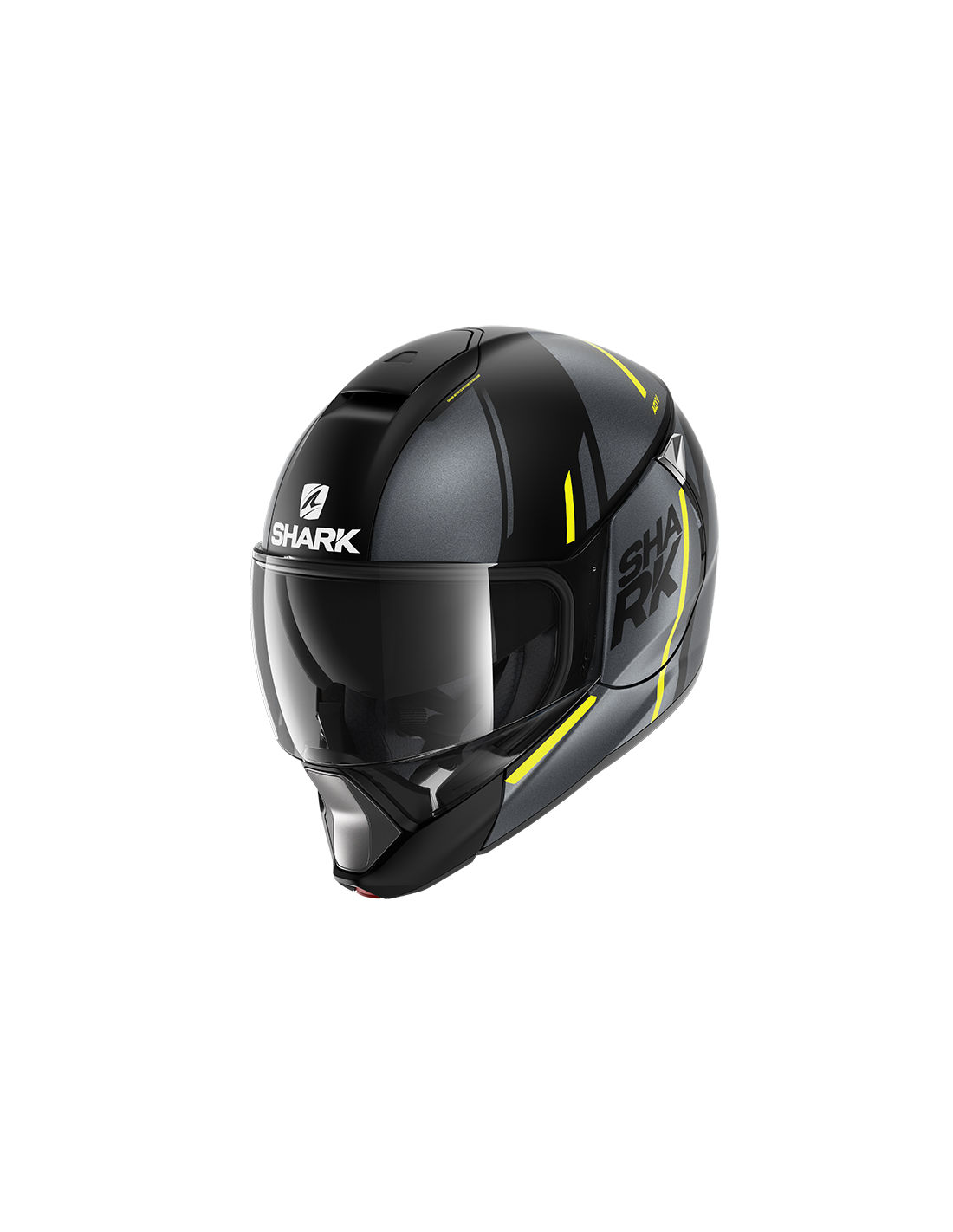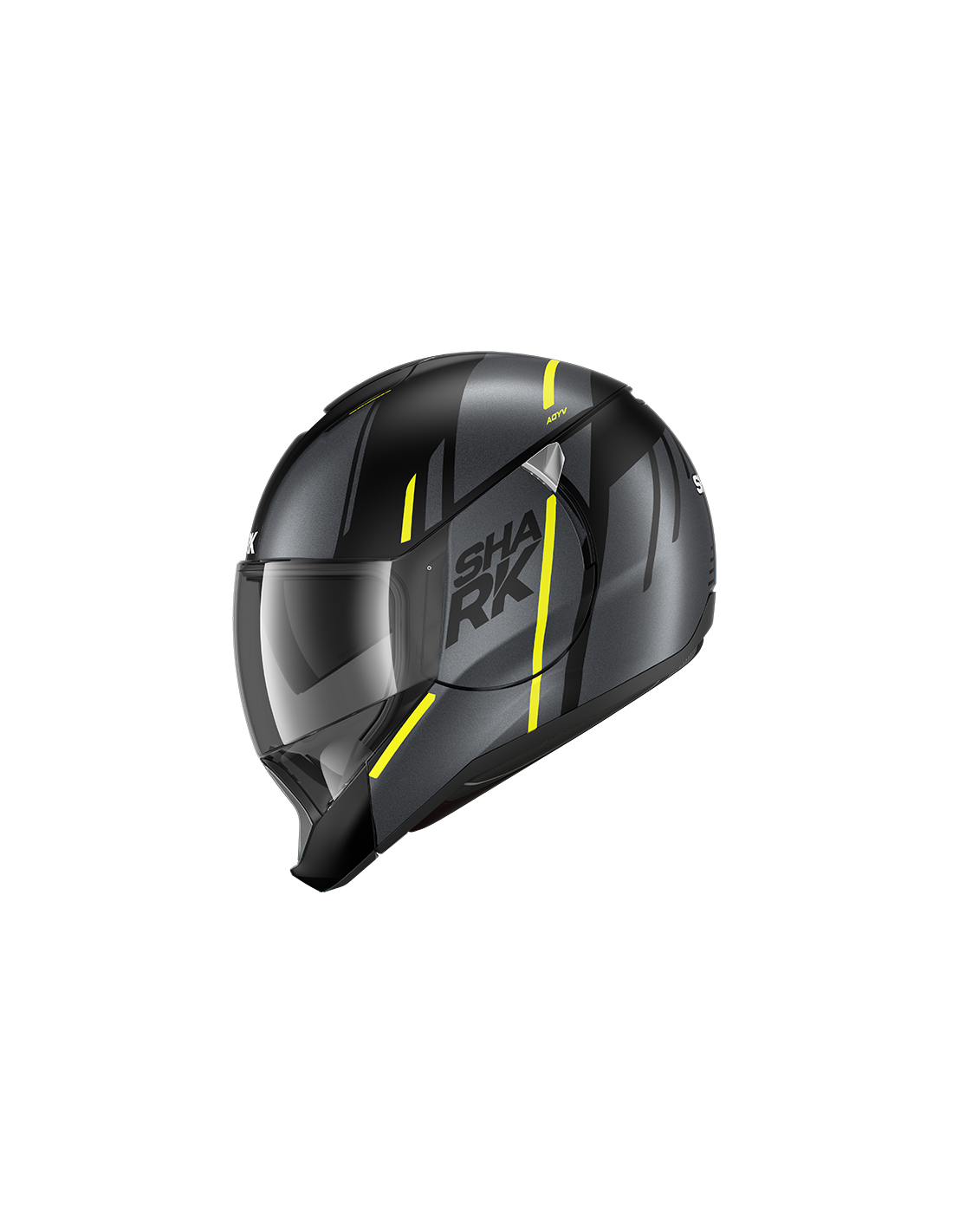 Grazie al suo inedito concetto di mentoniera collegata alla visiera, l’utilizzatore può viaggiare in tutta sicurezza con il casco in posizione aperta o chiusa, approfittando al contempo di un campo visivo molto ampio, equivalente a quello di un casco jet. Il casco integrale EVOJET assicura, in ogni situazione, un livello di protezione ottimale, quali che siano i punti d’impatto.