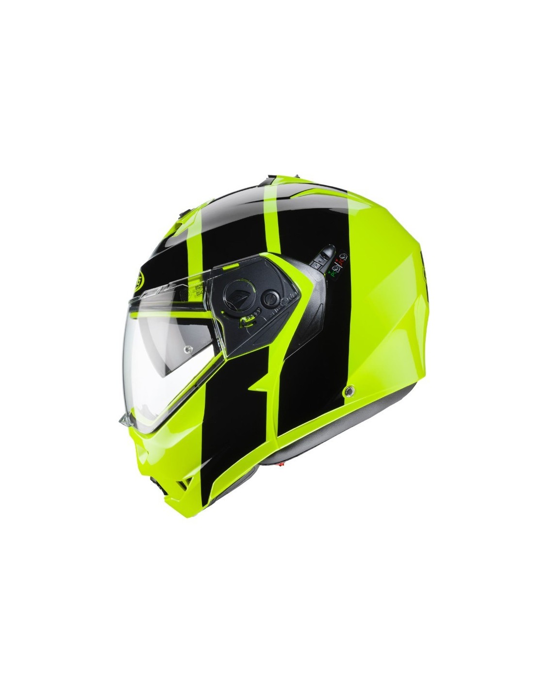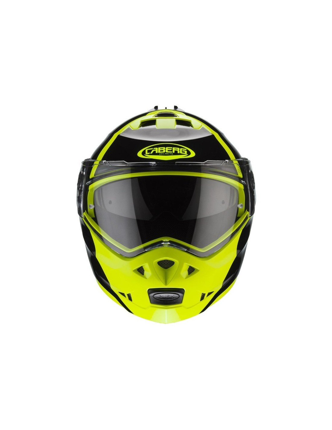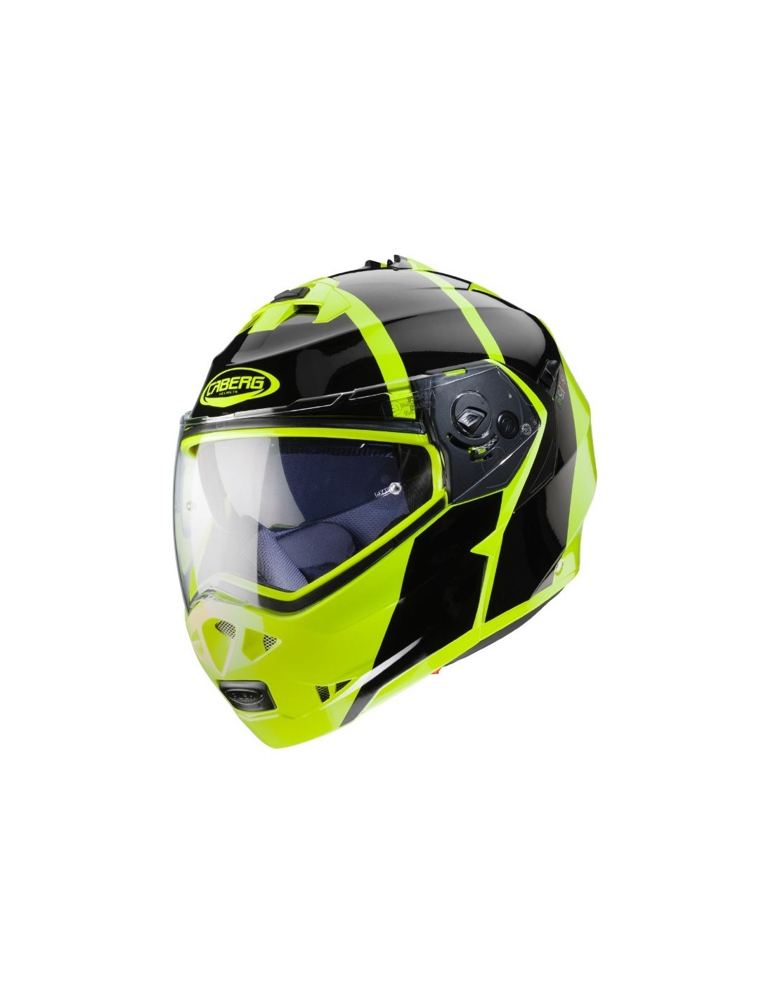 Questo è un casco moto modulare prodotto da CABERG nel 2019. Il colore è giallo-fluo. Consigliato per uso in strada.