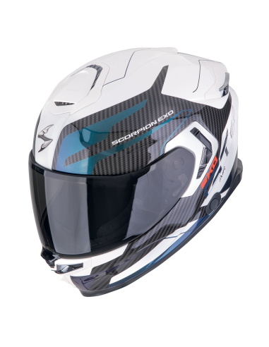 Questo è un casco moto prodotto da SCORPION nel 2024. Il colore è bianco. Consigliato per uso in strads/pista.