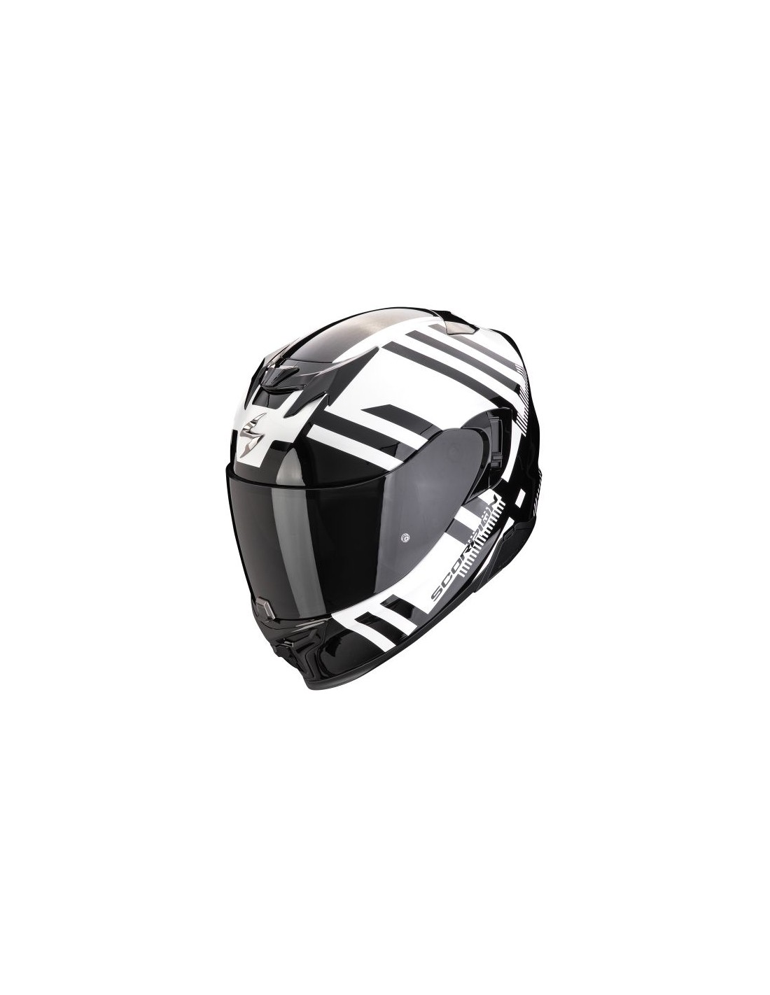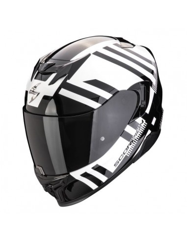 Questo è un casco moto prodotto da SCORPION nel 2024. Il colore è nero e bianco. Consigliato per uso in strada.