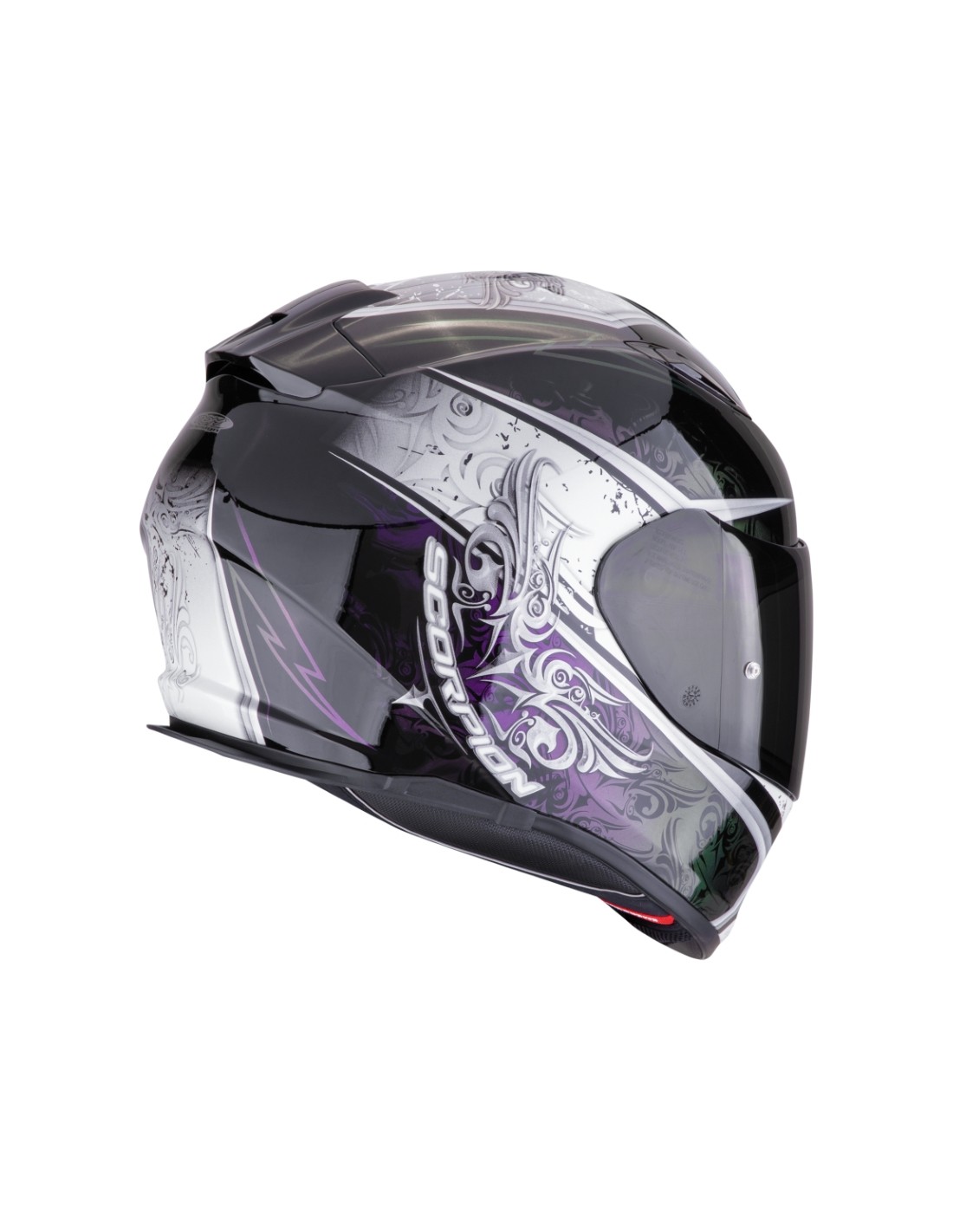 Utilizza l’EPS a strati multipli di ScorpionEXO e un sistema di ventilazione ram-air che garantisce un flusso d’aria significativo in entrata e in uscita. È predisposto per la visiera MaxVision® (opzionale) che offre un campo visivo più ampio. Il rivestimento interno Kwikwick® C, traspirante, completamente removibile e lavabile, è un ulteriore vantaggio, così come il visierino parasole interno SpeedView® integrato.