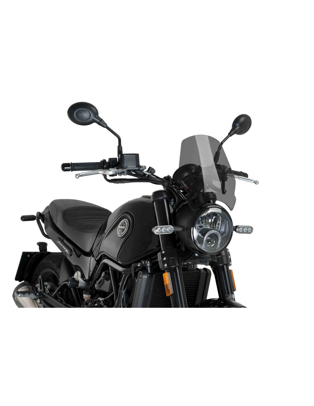 PUIG CUPOLINO NAKED NEW GENERATION SPORT PER BENELLI LEONCINO 500 ANNO 16-18 COLORE FUME' SCURO. Dimensioni (HxL): 295x258 mm. Altezza rispetto all'originale: +110 mm. Materiale: MPPA metacrilato alto impatto. Specifico per ogni modello di moto. Per il montaggio non si necessita di modifiche al veicolo. Kit montaggio e istruzioni comprese. Omologato T.U.V.