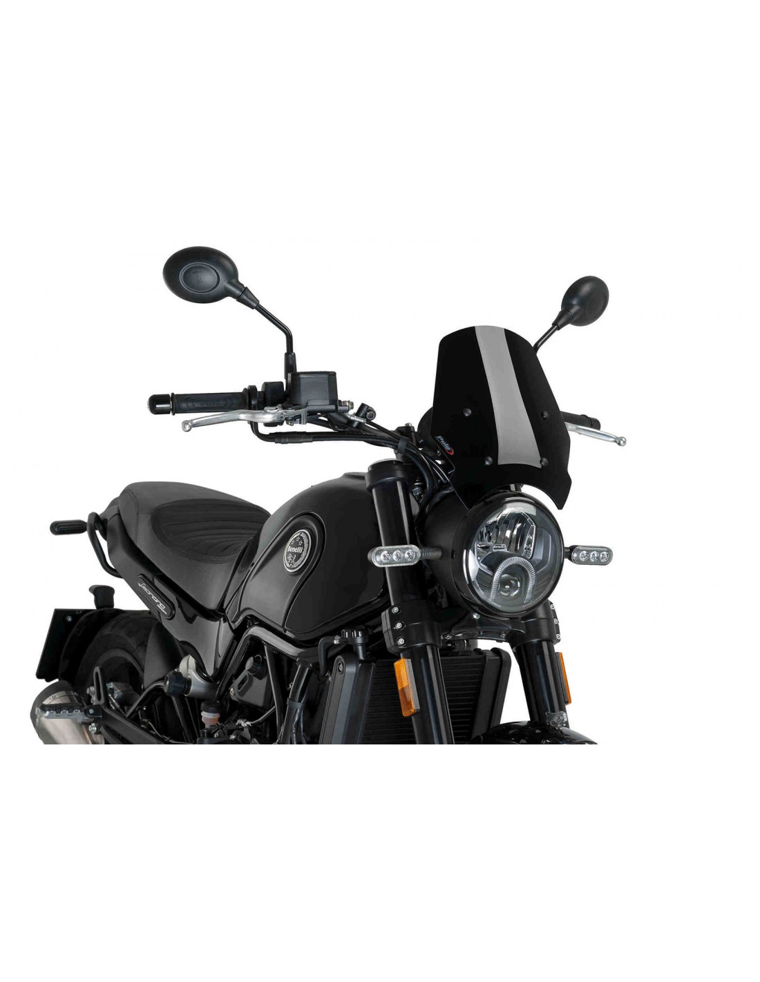 PUIG CUPOLINO NAKED NEW GENERATION SPORT PER BENELLI LEONCINO 500 ANNO 2016 COLORE NERO. Dimensioni (HxL): 295x258 mm. Altezza rispetto all'originale: +110 mm. Materiale: MPPA metacrilato alto impatto. Specifico per ogni modello di moto. Per il montaggio non si necessita di modifiche al veicolo. Kit montaggio e istruzioni comprese. Omologato T.U.V.