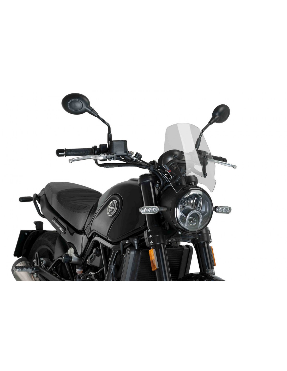 PUIG CUPOLINO NAKED NEW GENERATION SPORT PER BENELLI LEONCINO 500 ANNO 2018 COLORE TRASPARENTE. Dimensioni (HxL): 295x258 mm. Altezza rispetto all'originale: +110 mm. Materiale: MPPA metacrilato alto impatto. Specifico per ogni modello di moto. Per il montaggio non si necessita di modifiche al veicolo. Kit montaggio e istruzioni comprese. Omologato T.U.V.