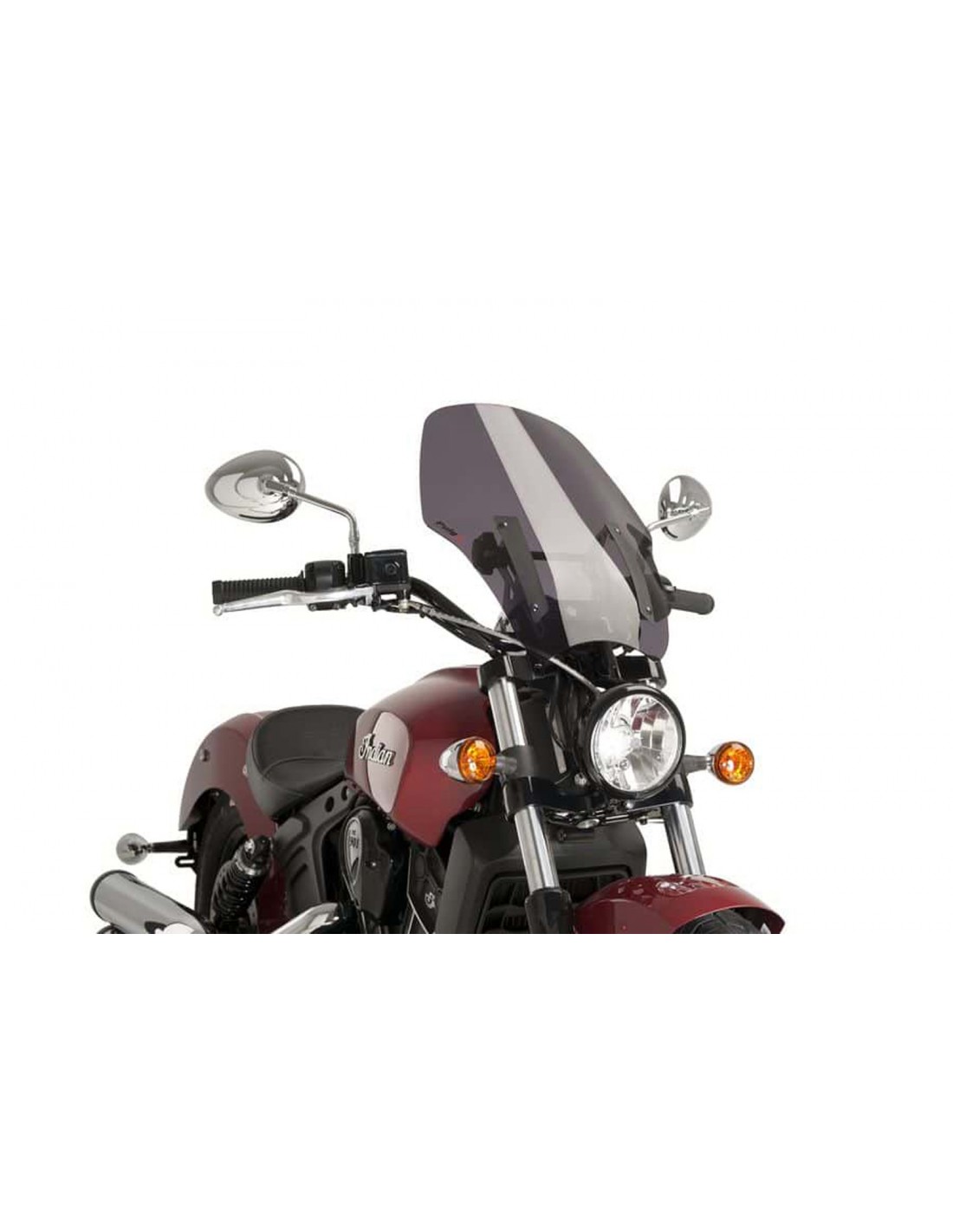 PUIG CUPOLINO NAKED NEW GENERATION TOURING PER INDIAN SCOUT ANNO 2015 COLORE FUME' SCURO. Dimensioni (HxL): 500x375 mm. Realizzato in metacrilato alto impatto. Specifico per ogni modello di moto. Per il montaggio non si necessita di modifiche al veicolo. Kit montaggio e istruzioni comprese. Omologato T.U.V.