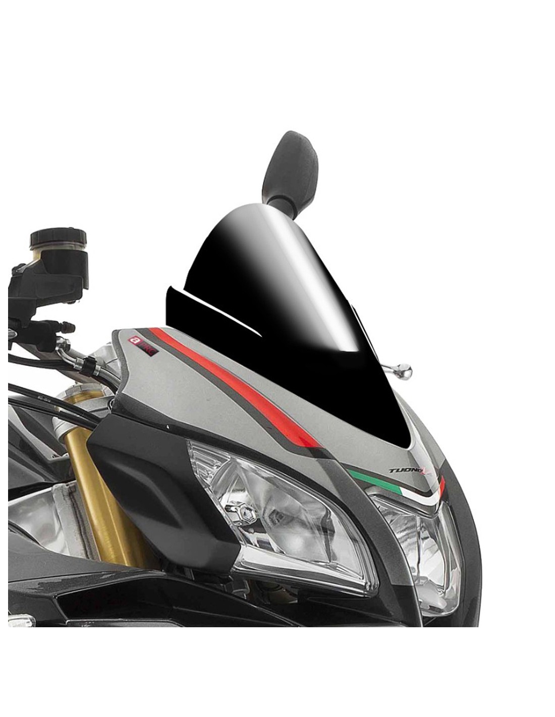 PUIG CUPOLINO RACING per APRILIA TUONO anno 2016 colore nero. Dimensioni (HxL) mm: 320x270. Altezza rispetto all'originale: +30 mm. Prodotto sviluppato nella galleria del vento, permette una maggiore protezione aerodinamica del conducente. Materiale: metacrilato 3 mm alto impatto. Omologato T.U.V.