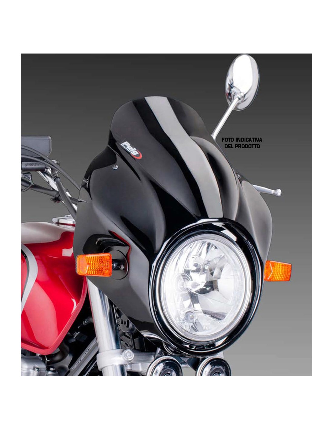 PUIG CUPOLINO UNIV. MOD. THUNDER DAELIM ROADWIN 125 2008 NERO. Realizzato per il montaggio su fari tondi con due punti di fissaggio. Diametro del faro: 20-22 cm. Dimensioni (H x L): 360 x 380 mm. Materiale: metacrilato alto impatto. Omologato T.U.V.