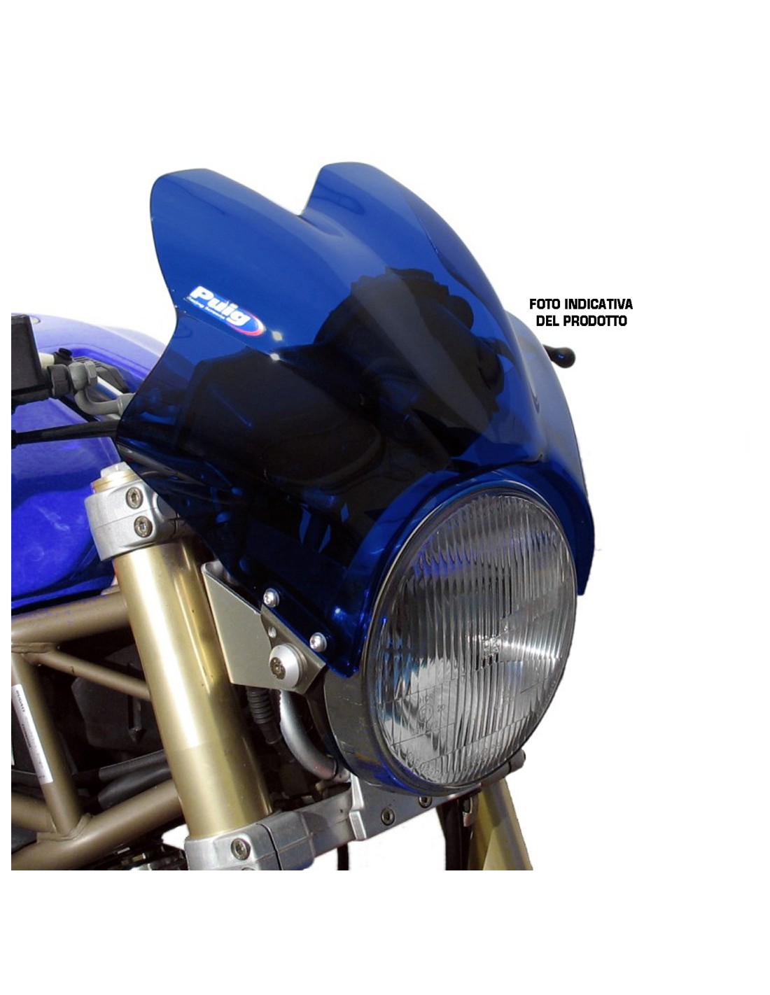 PUIG CUPOLINO UNIV. MOD. WAVE DAELIM ROADWIN 125 2009 BLU. Realizzato per il montaggio su fari tondi con due punti di fissaggio. Diametro del faro: 20-22 cm. Dimensioni (H x L): 325 x 375 mm. Materiale: metacrilato alto impatto. Omologato T.U.V.