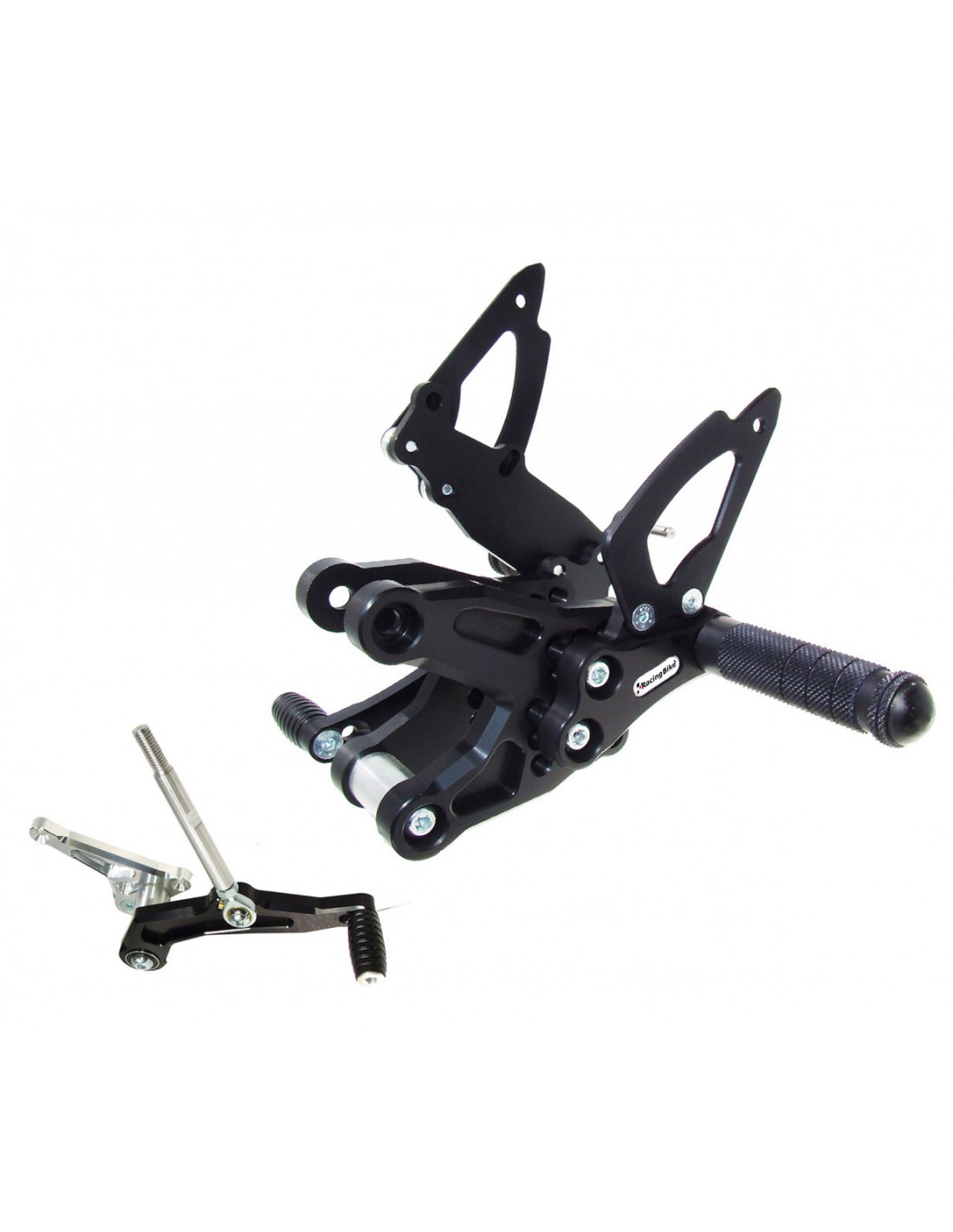 RACINGBIKE PEDANA REGOLABILE CON POGGIAPIEDE FISSO e CAMBIO ROVESCIATO PER BMW S 1000 RR ANNO 2014 COLORE NERO. Le pedane presentano: tappi in teflon sostituibili, poggiapiedi godronato antiscivolo, paratacco da entrambi i lati, leveraggi montati su un doppio cuscinetto, piastra con attacco pompa freno separata, piastra multiregolabile da 12 mm, ergal anodizzato 7075 ricavato dal pieno. PER il montaggio necessitano la rimozione del cavalletto laterale.