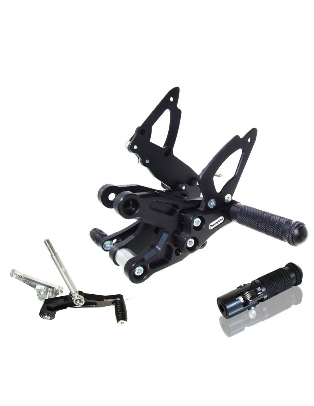 RACINGBIKE PEDANA REGOLABILE CON POGGIAPIEDE PIEGHEVOLE e CAMBIO ROVESCIATO PER BMW S 1000 R ANNO 2014 COLORE NERO. Le pedane presentano: tappi in teflon sostituibili, poggiapiedi godronato antiscivolo, paratacco da entrambi i lati, leveraggi montati su un doppio cuscinetto, piastra con attacco pompa freno separata, piastra multiregolabile da 12 mm, ergal anodizzato 7075 ricavato dal pieno. PER il montaggio necessitano la rimozione del cavalletto laterale.
